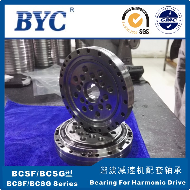 BCSF/BCSG/BSHF/BSHG Series Cross Roller Bearing for Harmonic Drive is cross roller structure.According to its application area there are two types( BCSF/BCSG Series and BSHF/BSHG Series ).Rolling body are cylindrical rollers which arranged orthogonality,this structure can make one bearing can bear the load from every direction e.g. radial,axial and tilting torque etc. Bearing with high rigidity,rotation accurancy and load carrying capacity. This series bearing has compact appearance,with mounting hole,customer can mount directly,suitable for every kinds of harmonic drives.