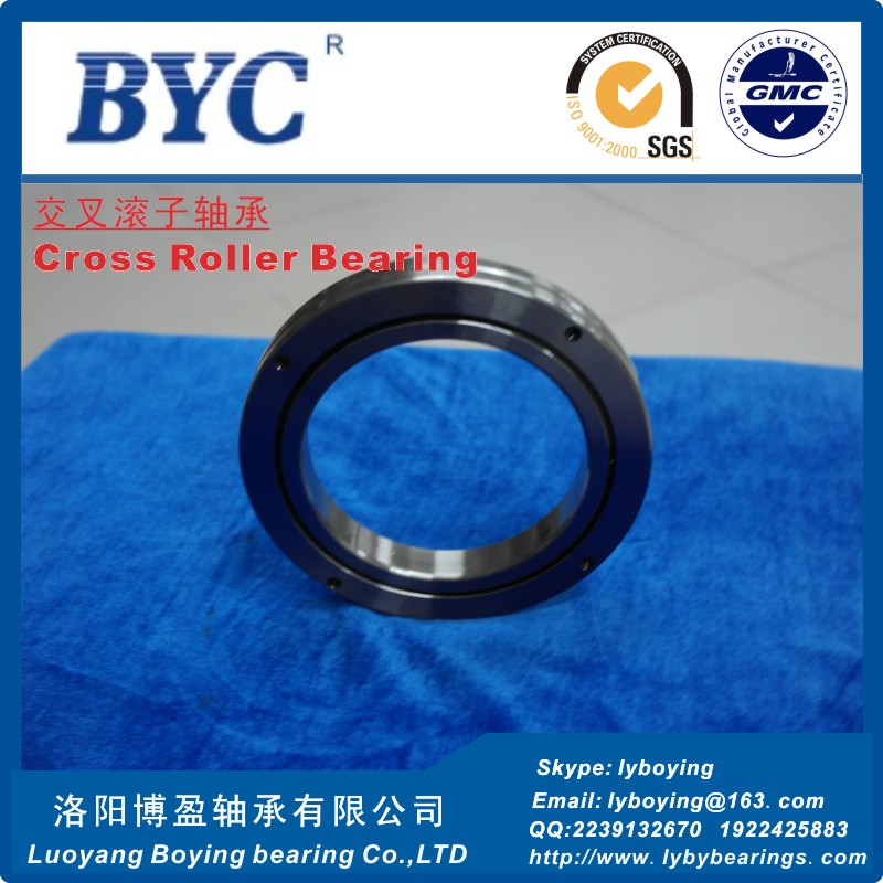 | 產(chǎn)品特點 | BYC交叉滾子軸承是兩列圓柱滾子在呈90度的V形滾道上通過尼龍隔離塊被相互垂直交叉排列,所以交叉滾子軸承可承受徑向負(fù)荷、軸向負(fù)荷及力矩負(fù)荷等多方向的負(fù)荷。內(nèi)外圈的尺寸被小型化,極薄形式更是接近于極限的小型尺寸,并且具有高剛性,BYC博盈交叉滾子軸承精度可達(dá)到P2級。因此適合于工業(yè)機(jī)器人的關(guān)節(jié)旋轉(zhuǎn)部、機(jī)械加工中心的旋轉(zhuǎn)臺、精密旋轉(zhuǎn)工作臺、醫(yī)療機(jī)器、計算器、IC制造裝置等設(shè)備。 | ||||||||||