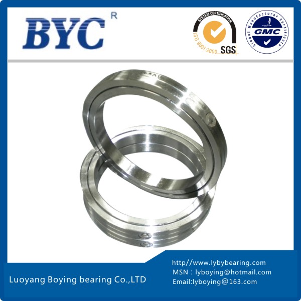 | 產(chǎn)品特點(diǎn) | BYC交叉滾子軸承是兩列圓柱滾子在呈90度的V形滾道上通過(guò)尼龍隔離塊被相互垂直交叉排列,所以交叉滾子軸承可承受徑向負(fù)荷、軸向負(fù)荷及力矩負(fù)荷等多方向的負(fù)荷。內(nèi)外圈的尺寸被小型化,極薄形式更是接近于極限的小型尺寸,并且具有高剛性,BYC博盈交叉滾子軸承精度可達(dá)到P2級(jí)。因此適合于工業(yè)機(jī)器人的關(guān)節(jié)旋轉(zhuǎn)部、機(jī)械加工中心的旋轉(zhuǎn)臺(tái)、精密旋轉(zhuǎn)工作臺(tái)、醫(yī)療機(jī)器、計(jì)算器、IC制造裝置等設(shè)備。 | ||||||||||