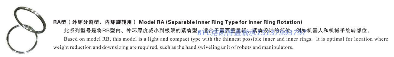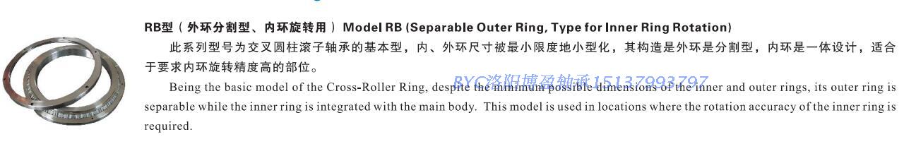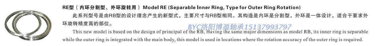 不帶安裝孔的交叉滾子軸承具有更薄的壁厚,適合安裝空間小的場(chǎng)合,軸承需要用法蘭盤(pán)壓裝在設(shè)備上,RB/RE/CRBH/SX/RA型的具體差別如下: