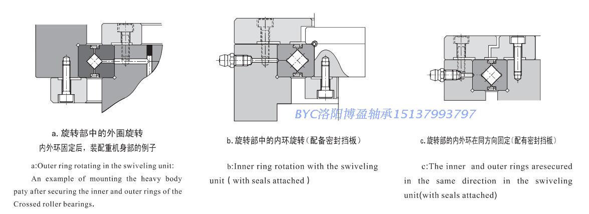 不帶安裝孔的交叉滾子軸承的安裝方式(使用法蘭盤(pán)或者臺(tái)階壓住內(nèi)外圈):
